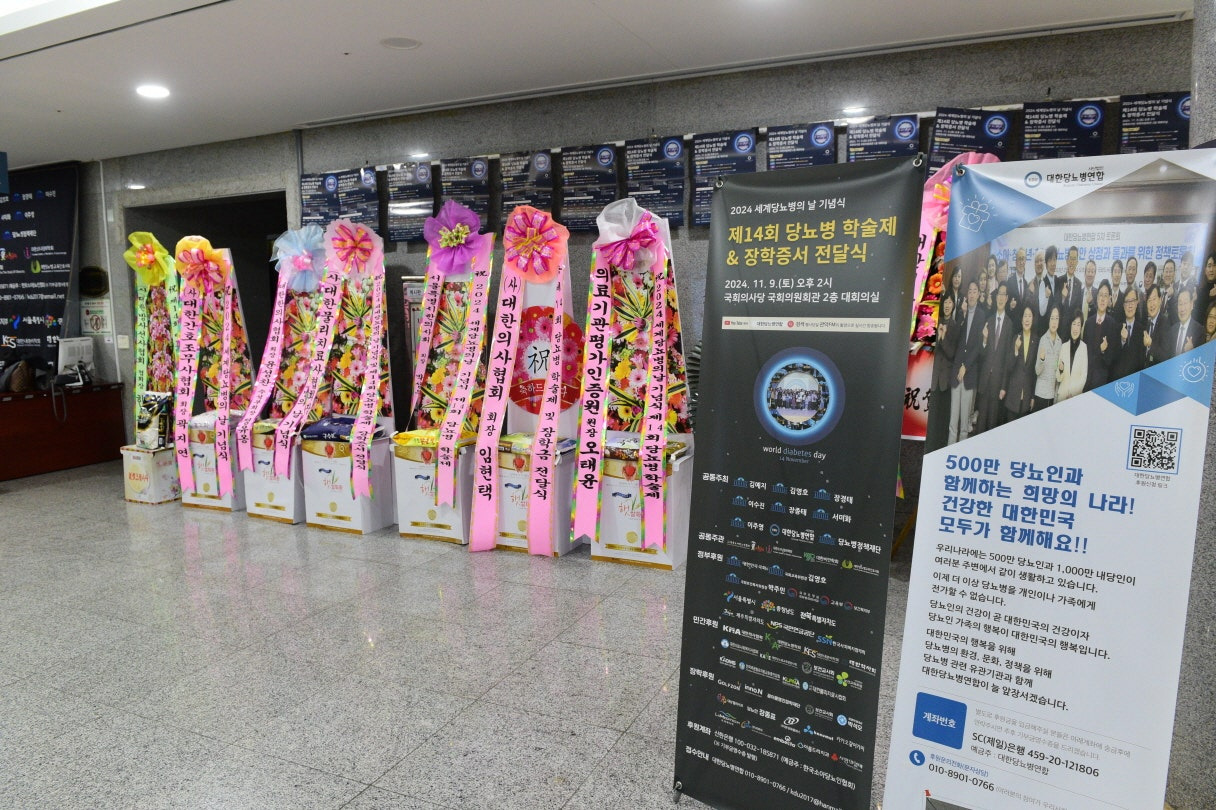 사단법인 대한당뇨병연합(이하 당뇨연합, 상임고문 양승조, 윤건호, 나성웅, 이사장 박호영)이 공식 주최한 ‘2024 세계 당뇨병의 날 기념식과 제14회 당뇨병 학술제 및 장학금 전달식’이 지난 11월 9일(토요일) 오후 2시 국회의사당 내 의원회관 대회의실에서 당뇨병환자와 가족부터 국회의원, 지자체장, 전문학회와 협회 대표 등 500여 명의 · 참석한 가운데 개최되었다.